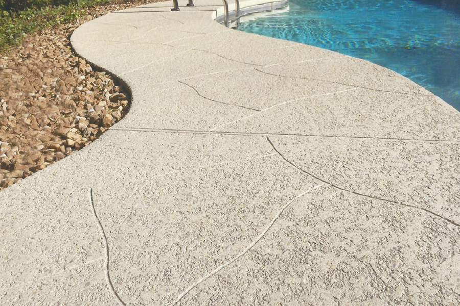 Our overlays are white polymerized concrete and are inherently more reflective than typical gray concrete or exposed aggregate by storing less energy. Put two coats of our Finish Coat (acrylic – plastic) on it and reflects even more, further improving the cooling effect.
